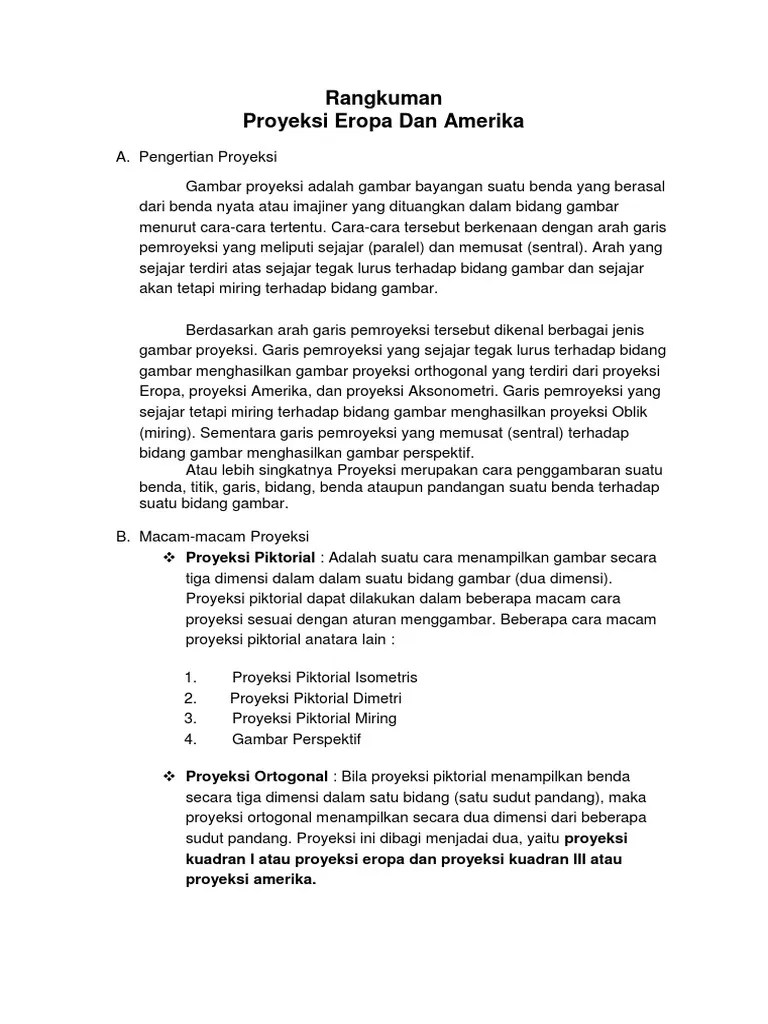 Topik 5 teknik membuat gambar proyeksi (proyeksi amerika dan eropa). Proyeksi merupakan cara penggambaran suatu benda, titik, garis, bidang, benda ataupun pandangan suatu benda terhadap suatu bidang gambar. Perbedaan proyeksi amerika dan proyeksi eropa dalam gambar teknik proyeksi orthogonal. Proyeksi di kuadran iii proyeksi amerika: Dalam proyeksi amerika, gambar pandangan atas digambarkan ….